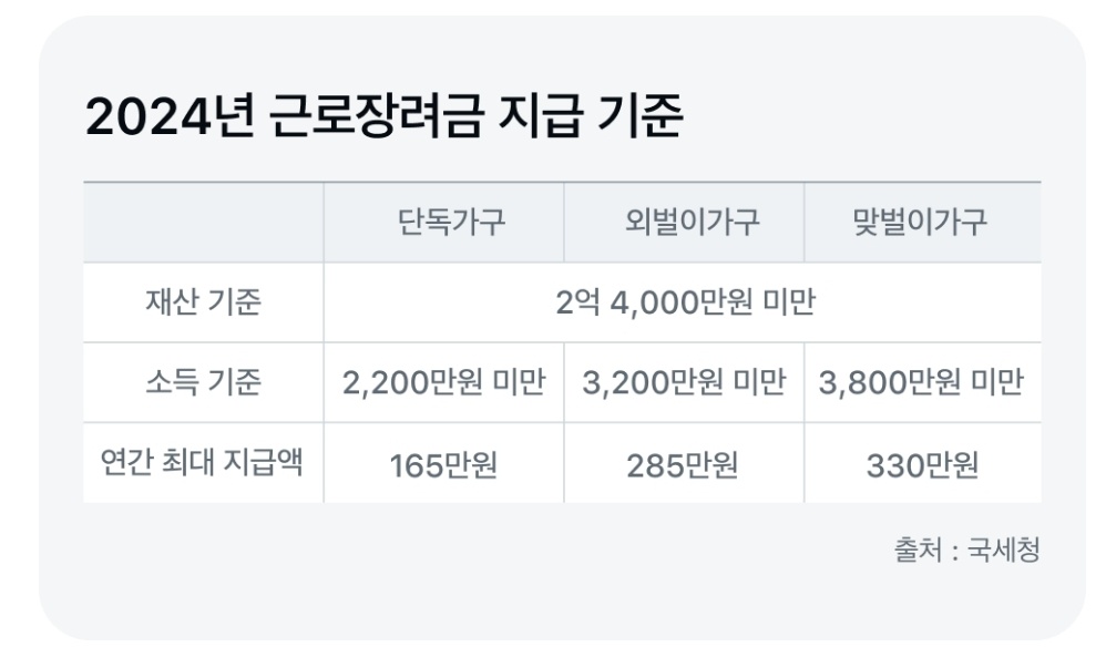 근로장려금을 받을 수 있는 기준은 따로 있습니다